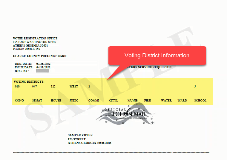 Voters can check their registration status and voting precinct at https://mvp.sos.ga.gov/s/. Reach out to your local voter registrar for detailed information about county, city, and congressional districts.